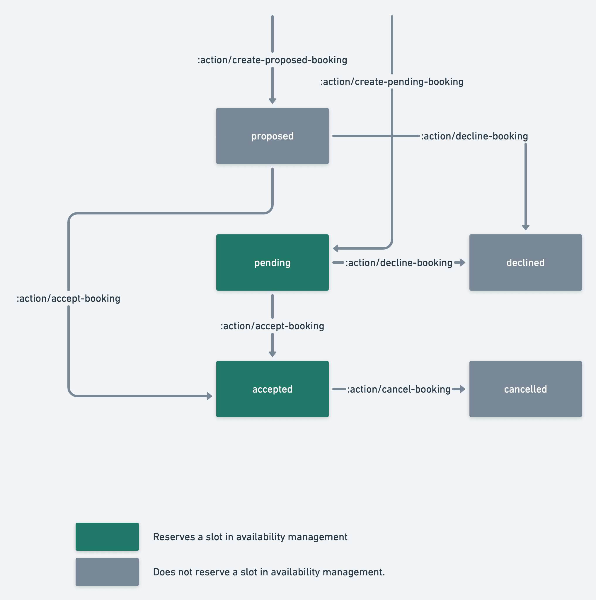 The figure below illustrates the possible booking states, transitions between the states and the corresponding actions that you can use in your transaction process.